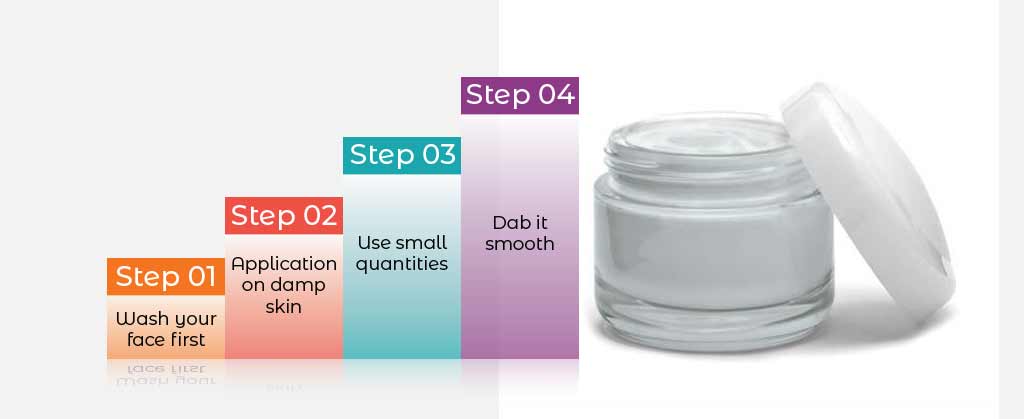 1st step: Wash your face first : No matter at what time of the day you apply the face cream, you have to wash your face as it helps to get rid of sweat, grime, makeup, etc. This will allow the cream to penetrate your pores and work its magic.