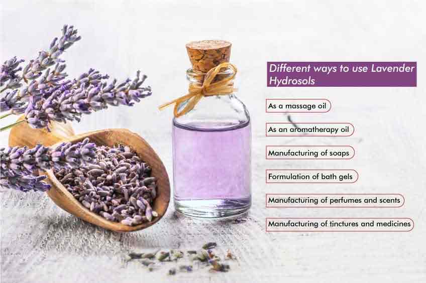 Lavender hydrosol is the natural substitute for skin toner. It improves the skin complexion and makes the skin firmer, and also promotes new cell generations.